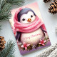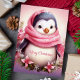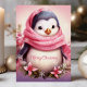 Cute Penguin in Pink Scarf Christmas Holiday Card