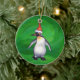 Cute Penguin in Santa Hat on Green Ceramic Ornament