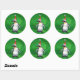 Cute Penguin in Santa Hat on Green Classic Round Sticker