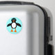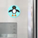 This fun Christmas magnet features a cute penguin character with a white tummy, big blue eyes with black pupils and cute orange feet and beak. This charming little winter bird is sure to delight children and adults. The penguin sits on an icy pale blue background to remind him of his chilly Artic home.