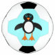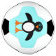 This awesome soccer ball features a cute penguin character with a white tummy, big blue eyes with black pupils and cute orange feet and beak. This charming little winter bird is sure to delight children and adults. The penguin sits on an icy pale blue background to remind him of his chilly Arctic home.