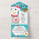 A unique, eye-catching and budget friendly all in one invitation with tear off recipe card for friends and family. Featuring bright and colourful cartoon penguins wearing Christmas hats; a chocolate chip cookie; round gingerbread cookies with frosting and a holly design; all of which are set against a background filled with blue, green, red and tan holly leaves, snow and chevron stripes. Personalize the text templates and get the spirit of Christmas rolling.