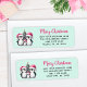 Create elegant mint green and pink Merry Christmas return address labels with a cute penguins' family near a Christmas tree illustration. The template makes it easy to type your address.