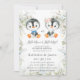 Cute Penguins Greenery Gender Reveal Baby Shower Invitation