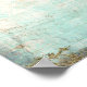 A poster with an adorable illustration of a penguin couple cuddling together. Wearing winter scarves and hats. Set on a cream colored vintage background with turquoise accents.