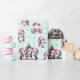 This joyful mint green and pink Christmas wrapping paper features a unique pattern of penguins in pink apparel having fun while celebrating the winter holidays. Cute penguins decorate Christmas trees, meet family and friends, and go ice skating, so this design is perfect for stylish festive gift wraps.