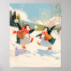 Cute Penguins Playing in Snow Watercolor Nursery Poster