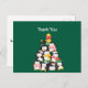 This thank-you card features an adorable stack of cheerful penguins arranged in the shape of a Christmas tree. Each penguin is dressed in festive winter attire, with cozy scarves, Santa hats, and holiday-themed accessories. At the top of the "penguin tree," a bright yellow star with a red bow adds a final touch of holiday spirit. With their rosy cheeks and joyful expressions, these penguins bring a playful, heartwarming vibe to the card, making it perfect for sharing holiday gratitude and joy with loved ones.