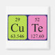 Cute spelled out as Cu Te (Copper Tellurium) on a magnet for the scientist in you.