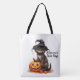 Cute Personalized Black Cat and Pumpkin Tote Bag