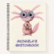 Cute and fun personalized sketchbook with an illustration of a pink axolotl with glasses. Funny cartoon axolotl that will be the delight of the axolotl lover. Illustrated and designed by Patricia Alvarez.