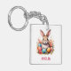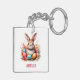 Celebrate Easter and spring with this adorable personalized keychain featuring a watercolor bunny nestled among colorful Easter eggs. A charming design perfect for children and adults alike, customized with the name. This cute accessory makes a wonderful gift, a delightful basket stuffer, or a lovely way to add a touch of seasonal cheer to your keys or bag.