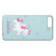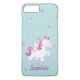 Personalized Phone Case featuring a Cute magical unicorn flying in the sky with purple stars. Cute and fun design for special for a girl who loves unicorns and magical ponies. Custom monogrammed gift.
