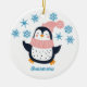 A pretty penguin in a pink winter scarf under beautiful blue snowflakes. Customize this cute holiday gift with a friend's name for an adorable personalized Christmas ornament.