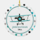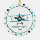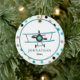 Cute Personalized Teal Airplane Polka Dot Ceramic Ornament