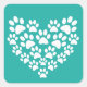 Cute Pet Paw Print Heart Square Sticker