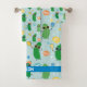 Cute Pickles playing Pickleball on light blue Bath Towel Set