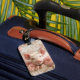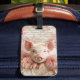 Luggage tag featuring an adorable pig with blush pink flowers. This charming and durable accessory adds a touch of whimsy to your travel gear, making it easy to identify your luggage with a cute and unique design.