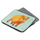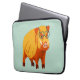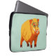 Funny pig laptop sleeve with an illustration of a digitally painted boar with big tusks and heart shaped eyeglasses in bright yellow, orange and blue colours.