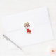 A whimsical hand-drawn illustration of a cheerful cartoon piglet peeking out from a festive red Christmas stocking. Featuring big sparkling eyes, rosy cheeks, and a bright yellow bow, this playful artwork is inspired by classic children’s book styles. The knitted stocking texture with fluffy white trim adds warmth and holiday charm.