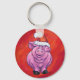 Cute Pig in Santa Hat on Red Keychain
