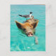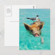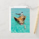 Cute pig swimming in water postcard