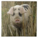 This awesome tile features a beautiful photograph of a cute pink spotty pig emerging from some tall grass.