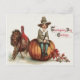 Cute Pilgrim Turkey Pumpkin Fall Leaves Postcard