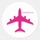 Cute Pink Airplane Girl Pilot Personalized Classic Round Sticker