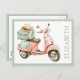 This adorable postcard features a watercolor scooter in soft shades of pink and aqua green. Personalize with your choice of name or special text on the front. Makes a cute gift tag.
