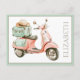 Cute Pink and Aqua Coastal Scooter Postcard
