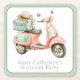 This adorable square paper coaster features a watercolor scooter in soft shades of pink and aqua green. Personalize with your choice of special text. Fun for personalized gift bags and party favors.