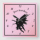 Cute Pink and Black Silhouette Fairy Girly Teen Square Wall Clock