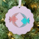 Cute Pink and Blue Love Birds Custom Ornament Card