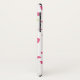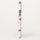 Phone case with a cute pattern composed of pink and green tumbling hearts on a white background.