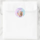 Cute pink and purple unicorn custom photo birthday classic round sticker