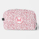 NewParkLane - Cute personalized Dopp Kit, featuring a pattern of pink and red little hearts, with a round frame for your name and monogram. Easy to customize in Zazzle with your own text for a personalized design.