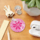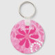 A cute and girly pink and white floral keychain for a teen girl with pink retro daisies and white circle swirls. This pretty flowers design can be personalized by adding the name of any girlie girl.