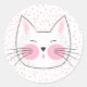 Cute Pink and White Japanese Kitty Cat Classic Round Sticker