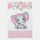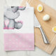 Cute Pink Baby Elephant and Roses Border Kitchen Towel