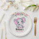 Cute Pink Baby Elephant and Roses Border Shower Paper Plate