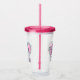 An acrylic tumbler with a cute pink elephant watercolor illustration. She has cute pink and white polka dot ears and a pretty pink ribbon bow on top of her head.