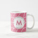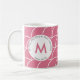 Cute Pink BE STILL AND KNOW Fish Scales Monogram Coffee Mug with Christian Bible verse based on Psalm 46:10 - BE STILL AND KNOW THAT I AM GOD. The design shows a geometric pattern of overlapping circles in pink and white. In the centre circle there is a modern MONOGRAM. All text is CUSTOMIZABLE, so you can add your name, favourite Bible verse or other text and add your initial. The design is repeated on the reverse. This is a simple, pretty design that will coordinate with modern drinkware accessories, and this pink monogram Christian coffee mug would make a great gift for Christmas, birthdays and 'just because' days. Choose from a wide selection of inspirational Christian mugs and other drinkware, designed by #bereandesigns