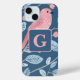 Cute pink bird blue grey personalized monogram Case-Mate iPhone case