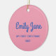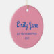 Celebrate a special first Christmas with this charming ceramic ornament featuring a pink background with blue text on the front and your baby’s photo on the back. This personalized design beautifully captures the joy of the season, creating a keepsake that will be treasured for years to come. Perfect for adding a touch of sweetness to your holiday decor or as a thoughtful gift for new parents, this ornament is a delightful way to commemorate this milestone moment.