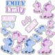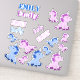 Cute unicorn stickers for kids. The design has pink and blue little unicorns and a personalizable name of the child - change the name with your name. The name is in different colours - blue, purple and pink and in different fonts. Great for children who love stickers and unicorns.