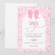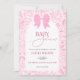 At the center, a charming pink bow adds a sweet touch, perfectly complementing the classic typography and refined layout. The combination of soft florals and balanced spacing gives this invitation a light, airy feel—ideal for spring and summer baby showers, garden parties, brunch celebrations, or elegant indoor gatherings.