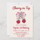 Cute Pink Bow Cherry on Top 1st Birthday Invitation