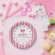 These charming girl 1st birthday party plates are ideal for parents planning a baby girl first birthday party, pink bow themed birthday, or a coquette bow birthday celebration. The elegant bow pattern and soft pastel pink tones create a beautiful table setting that feels both cute and timeless.