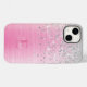 Cute Pink Brushed Metal Silver Glitter Monogram Case-Mate iPhone Case
